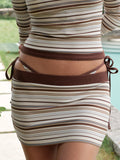 Brown Stripe Knit Mini Skirt