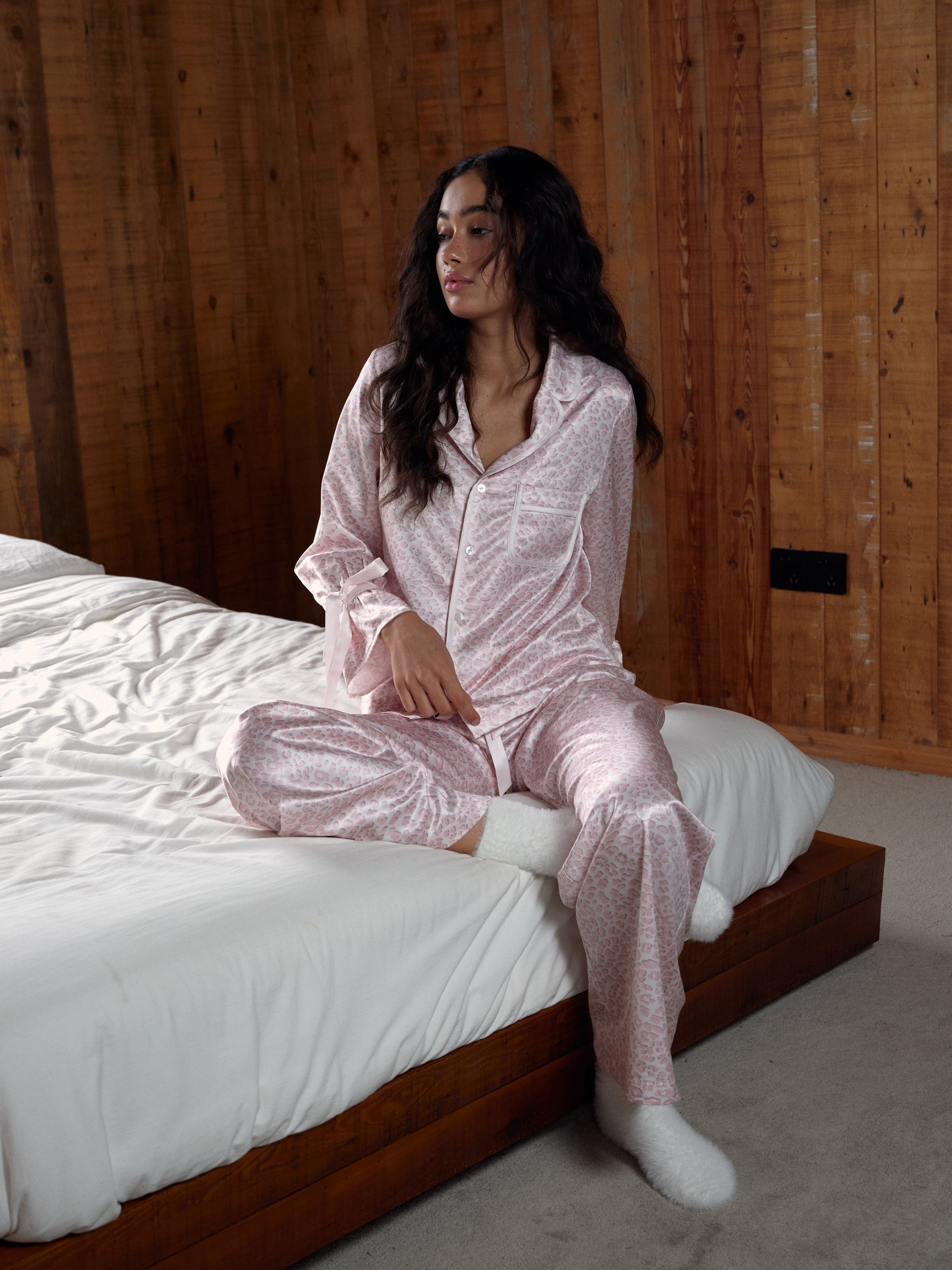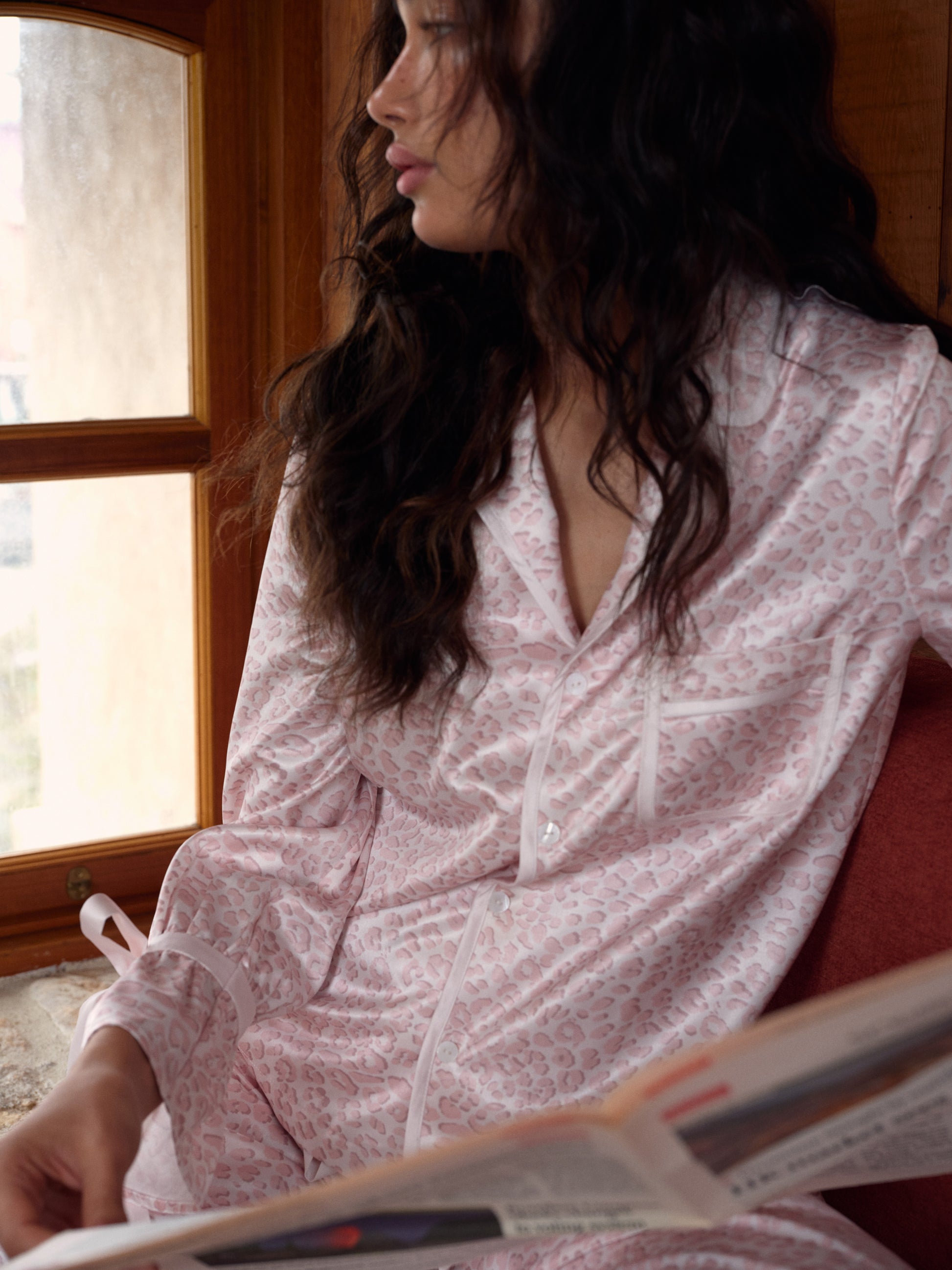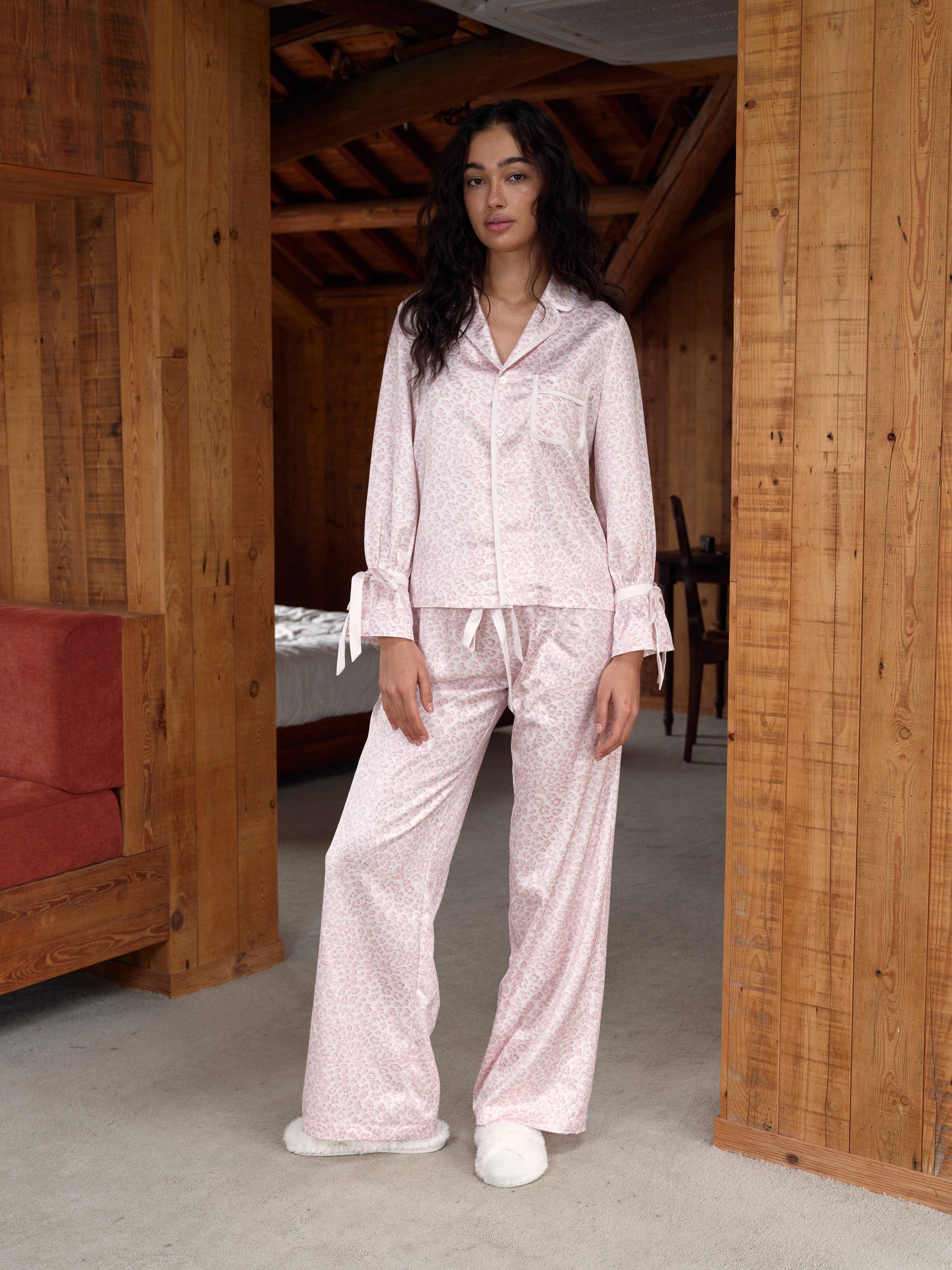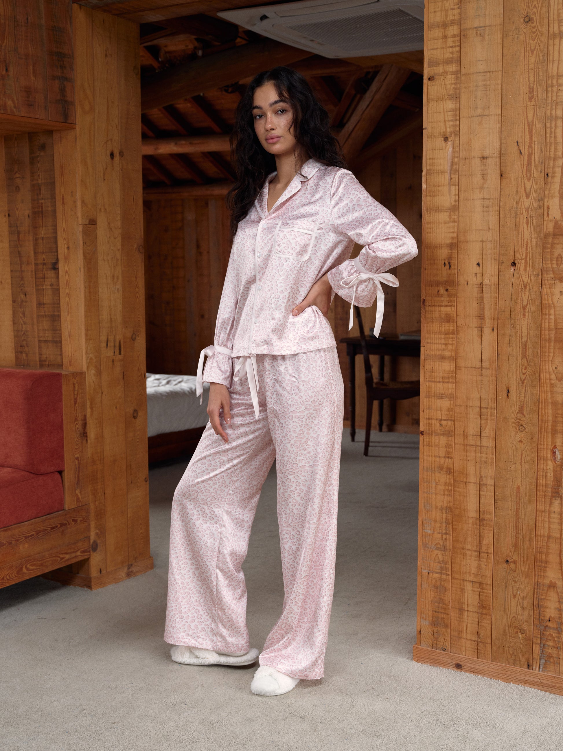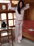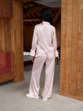 Pink Leopard Print Satin Long Pajama Set